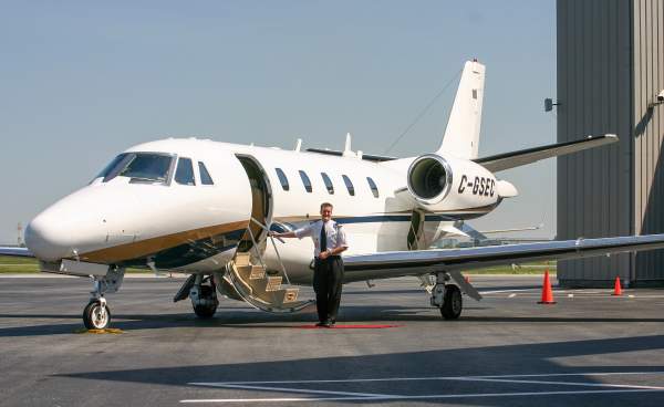 James Elian, then a first officer, now AirSprint President and CEO, beside a Cessna 560XL Citation Excel.