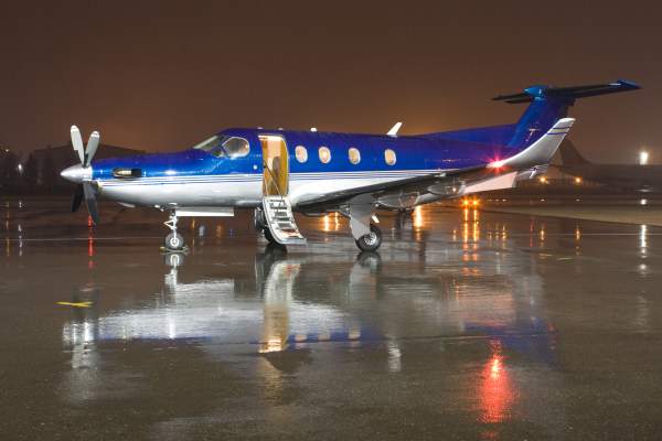 Nightime shot of AirSprint's PC-12.