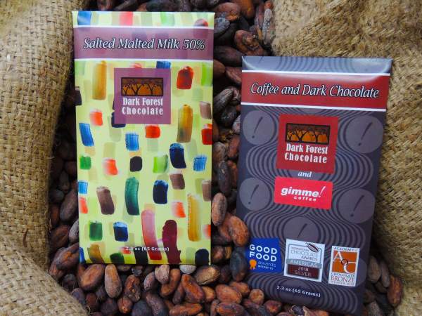 Dark Forest Chocolate | Selection of Bars | Buffalo, New YorkDark Forest Chocolate: Business and life partners JoAnne and Dan Sundell craft award-winning soy, nut-free and vegan chocolate from directly traded cacao spanning Peru, Uganda, Madagascar and beyond. Located in the Buffalo suburb of Lancaster, one of my favourites is their 50% Malted Milk bar made with barley malt and a sprinkling of salt to give you a creamy sweet/savoury chocolate that’s like a prepackaged, commercial confection, only infinitely better. And coffee lovers: pick up a bar of the multi awarded Coffee and Dark Chocolate featuring 70% Tanzanian cacao, Ithaca, NY’s Gimme Coffee’s Leftist Espresso with the crunch of organic cane sugar. It’s a keeper!