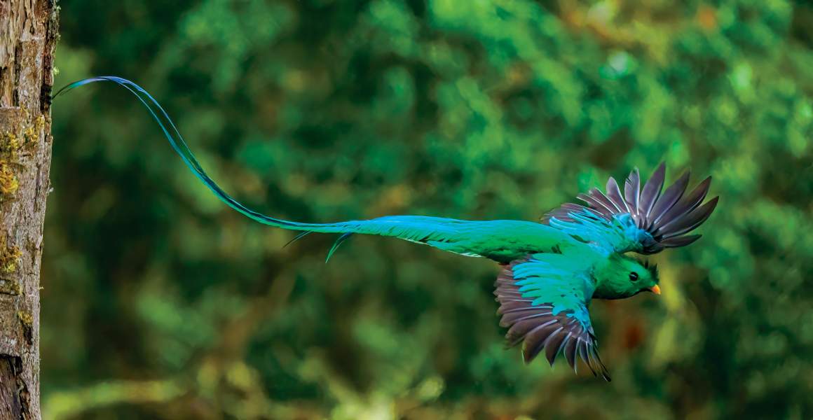 The maintenance and expansion of the country’s forests is key to the National Decarbonization Plan launched in early 2019. The goal: to achieve net zero emissions by 2050 so that the country produces no more emissions than it can offset through its healthy forests. Monteverde Cloud Forest Reserve is called the “green lung” of Costa Rica, where over 350 bird species live, including the vibrant quetzal. Part of the trogon family, males can have bright green feathers with a bright red breast and white tail feathers. These birds are considered the bird to see in Central America.